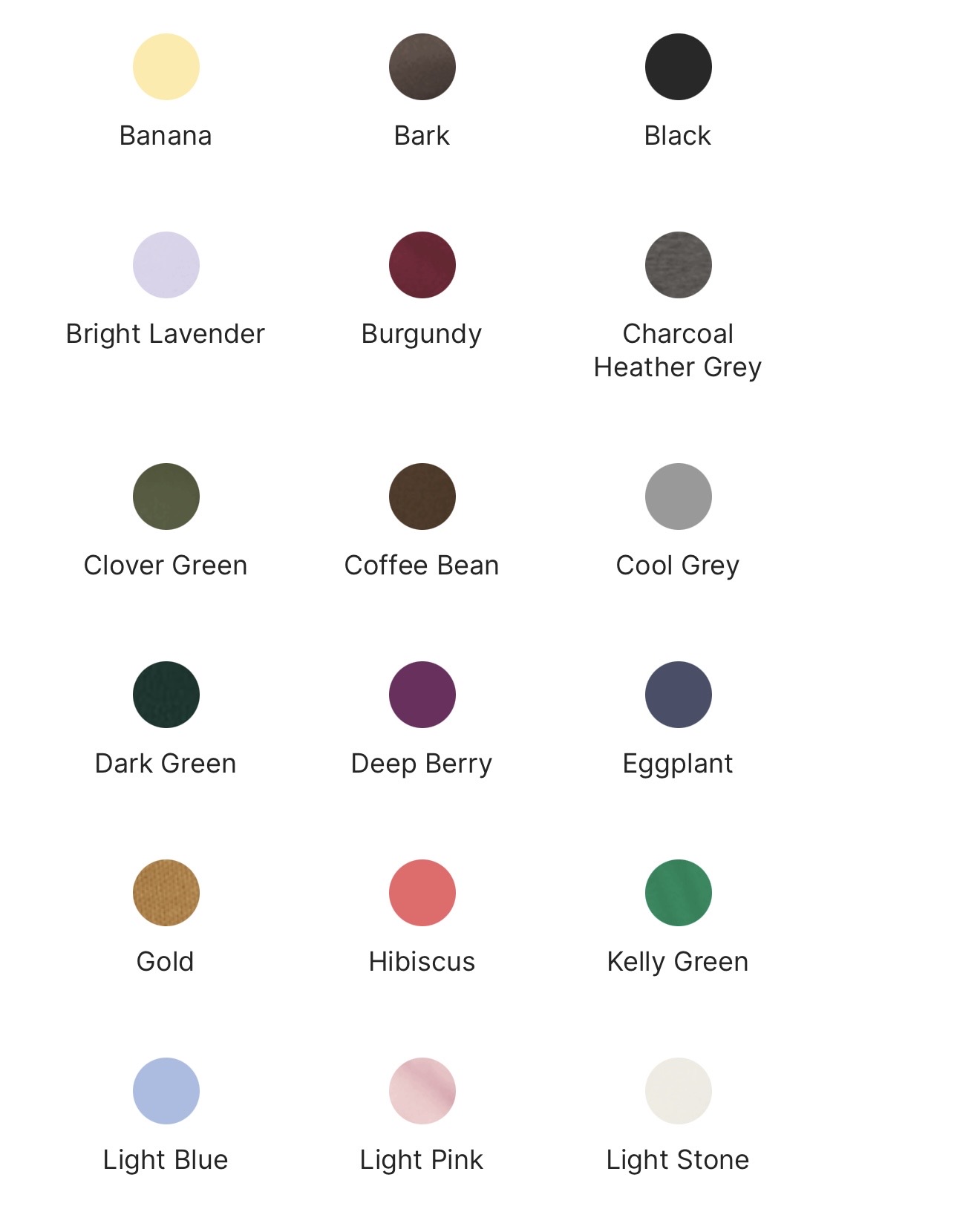 | COLORS | Burgundy, Eggplant, Purple, Red, Banana, Bark, Black, Bright Lavender, Charcoal Grey Heather, Clover Green, Coffee Bean, Cool Grey, Dark Green, Deep Berry, Gold, Hibiscus, Kelly Green, Light Blue, Light Pink, Light Stone, Lime, maroon, Maui Blue, Mediterranean Blue, Mint Green, Navy, Orange, Royal, Steel Grey, Stone, Strong Blue, Sunflower Yellow, Teal Green, Texas Orange, Tropical Pink, Turquoise, Ultramarine Blue, White |