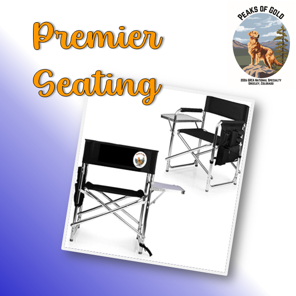 This raffle is for a chance to win two (2) embroidered Picnic Time chairs with reserved ringside seating. Each chair back will be embroidered with the 2026 National Specialty logo — a keepsake that tells everyone you were there!