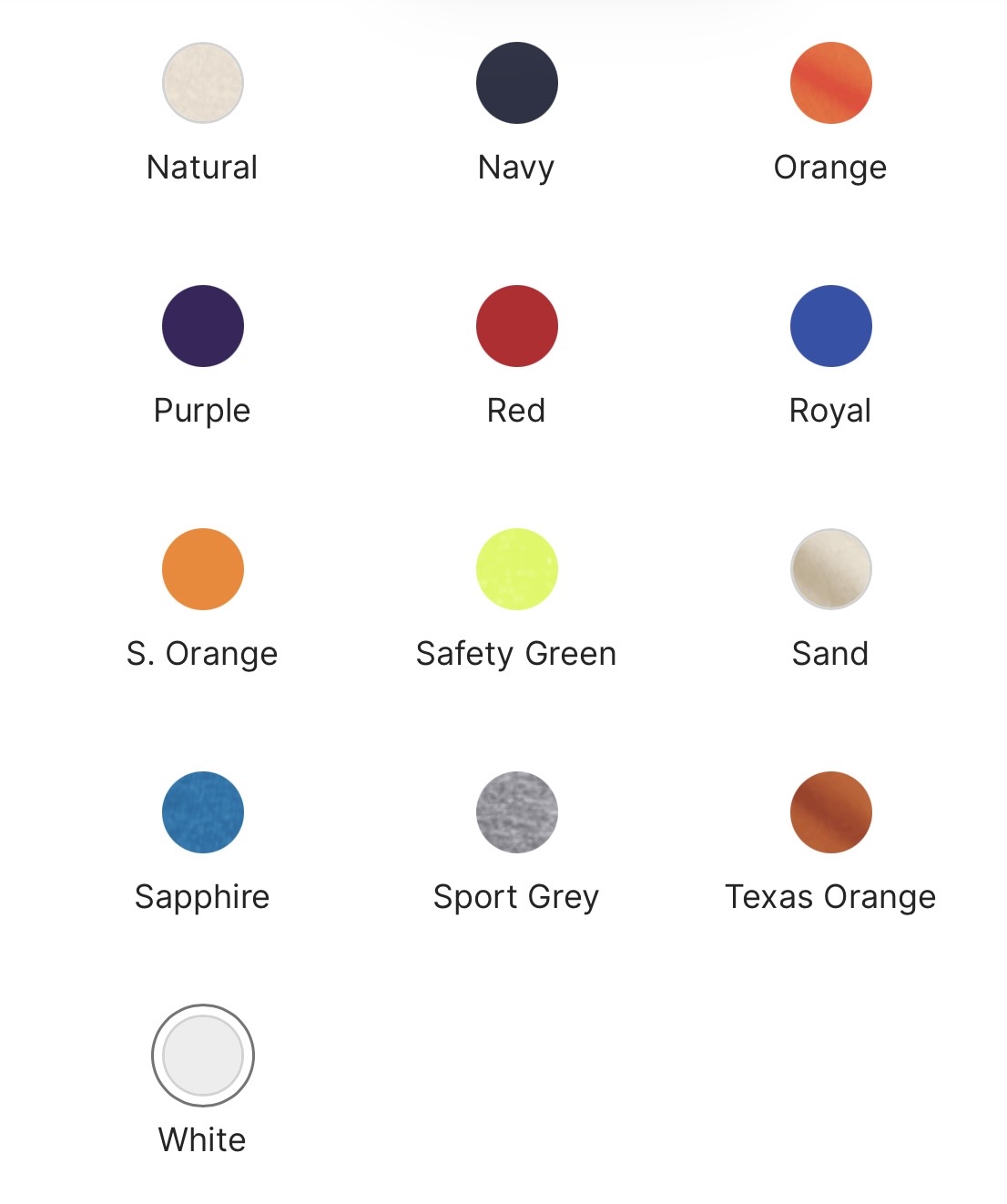 | COLOR | Black, Carolina Blue, Dark Chocolate, Forest Green, Gold, Indigo Blue, Light Blue, Light Pink, Maroon, Natural, Navy, Orange, Purple, Red, Royal, White, Ash, Cardinal Red, Charcoal, Dark Heather Grey, Irish Green, Military Green, Safety Orange, Safety Yellow, Sand, Sapphire, Sport Grey, Texas Orange |