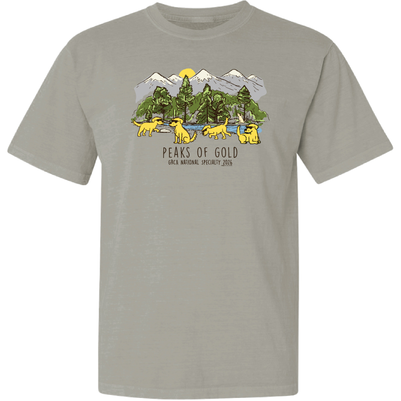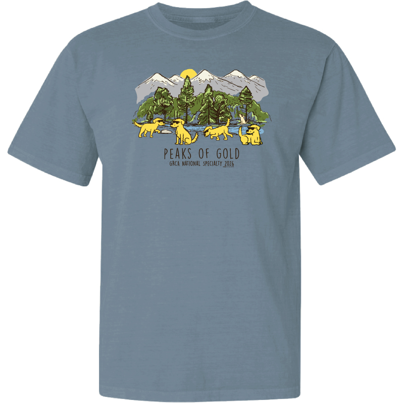 We are offering the Classic Short Sleeve tee in a variety of colors! As a fund-raiser for the GRCA National, orders are placed with Teddy the Dog once was have met order minimums. Then the order will ship to you.